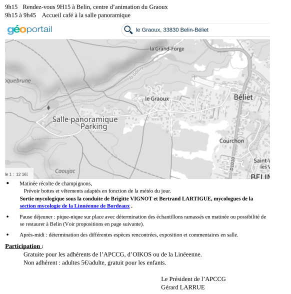 32 participants lors de cette sortie au Graoux à Belin sous la conduite de Brigitte VIGNOT et Bertrand LARTIGUE de la section mycologique de la Linnéenne de Bordeaux.