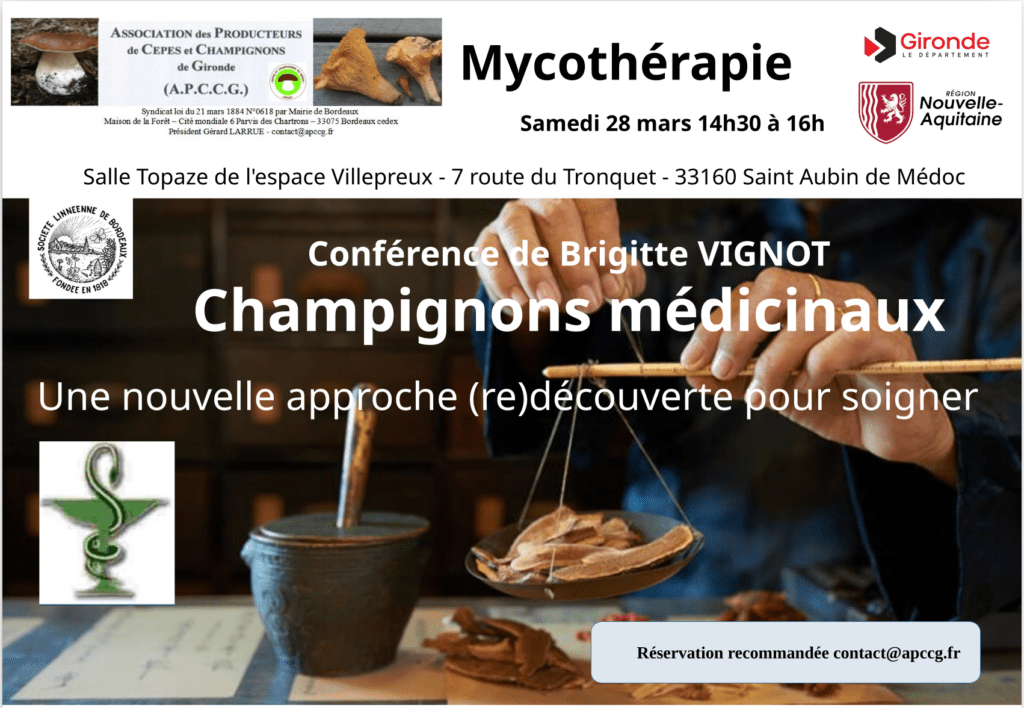 Samedi 28 mars 2026 Conférence sur la Mycothérapie Saint Aubin de Médoc